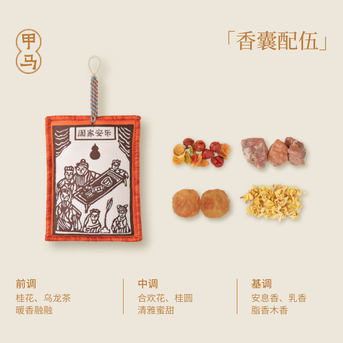 In the gentle spirit of Chinese folk tradition, every craft carries a soul, and every symbol bears a blessing. Ode to Harmony continues this lineage — blending the intangible Jiamǎ woodblock art of the Bai ethnic with the grace of traditional craftsmanship, creating a New-Chinese sachet imbued with warmth and meaning.