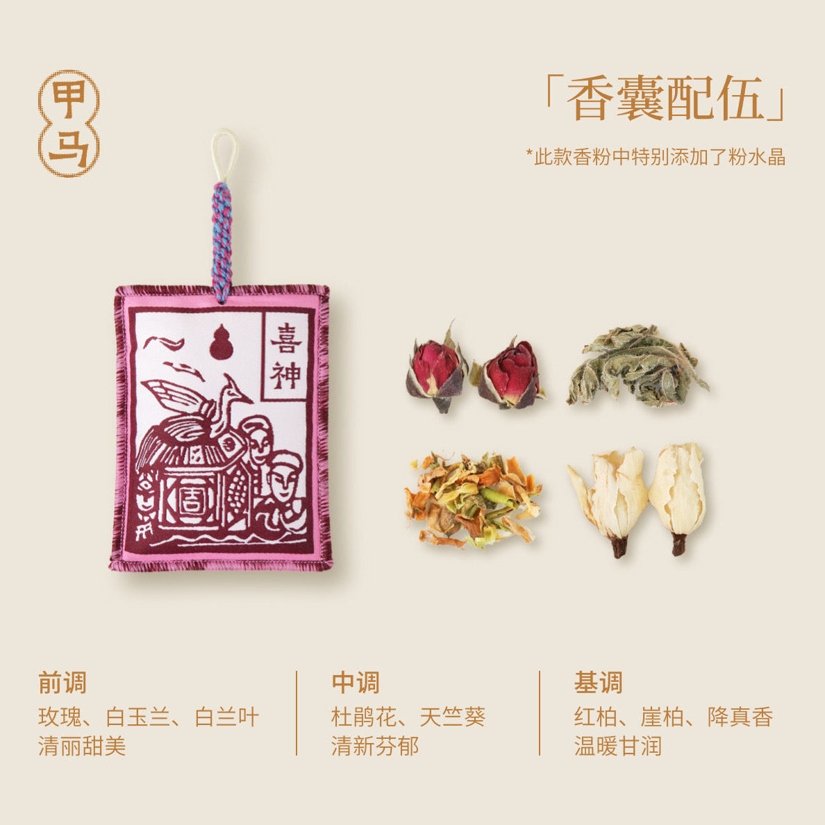 The hand-braided cotton cord adds a touch of rustic elegance, while the fragrance — a masterful blend of fine botanicals guided by classical Chinese herb wisdom — unfolds like a secret tryst of blossoms and woods within the sachet.
